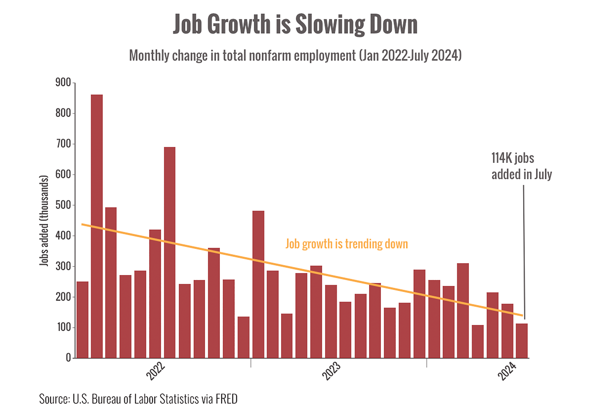 The unemployment rate ticked up in July to its highest level since October 2021, and job growth slowed more than expected.6